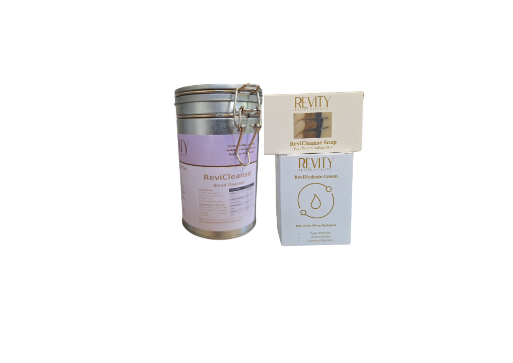 ReviHydrate Cream addresses problematic skin conditions such as eczema, psoriasis, and dermatitis, with a unique blend of essential oils and extracts, providing deep nourishment and hydration.