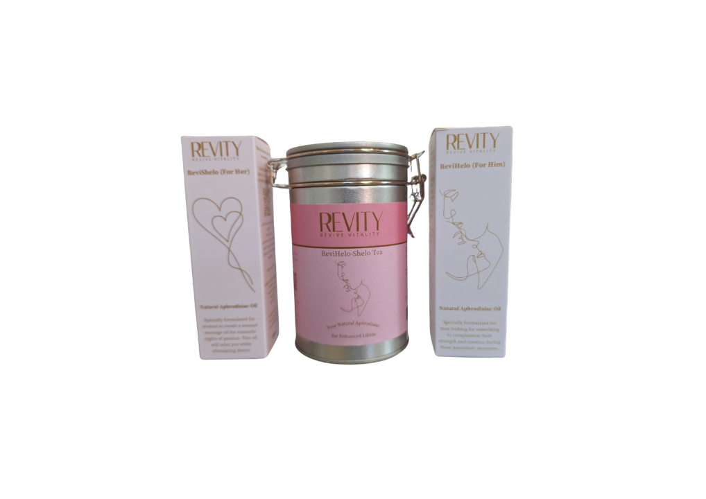 Revity introduces the Enhance Intimacy collection, featuring ReviHelo-Shelo Tea, a specially formulated herbal blend that acts as a natural aphrodisiac to boost libido for both men and women. If you’re facing challenges in the bedroom and have lost your desire, our ReviHelo Oil and ReviShelo Oil are here to help. ReviShelo Oil, designed for her, combines essential oils to relax and stimulate natural desire, while ReviHelo Oil is crafted for him. Together, they create a harmonious and passionate experience, with......