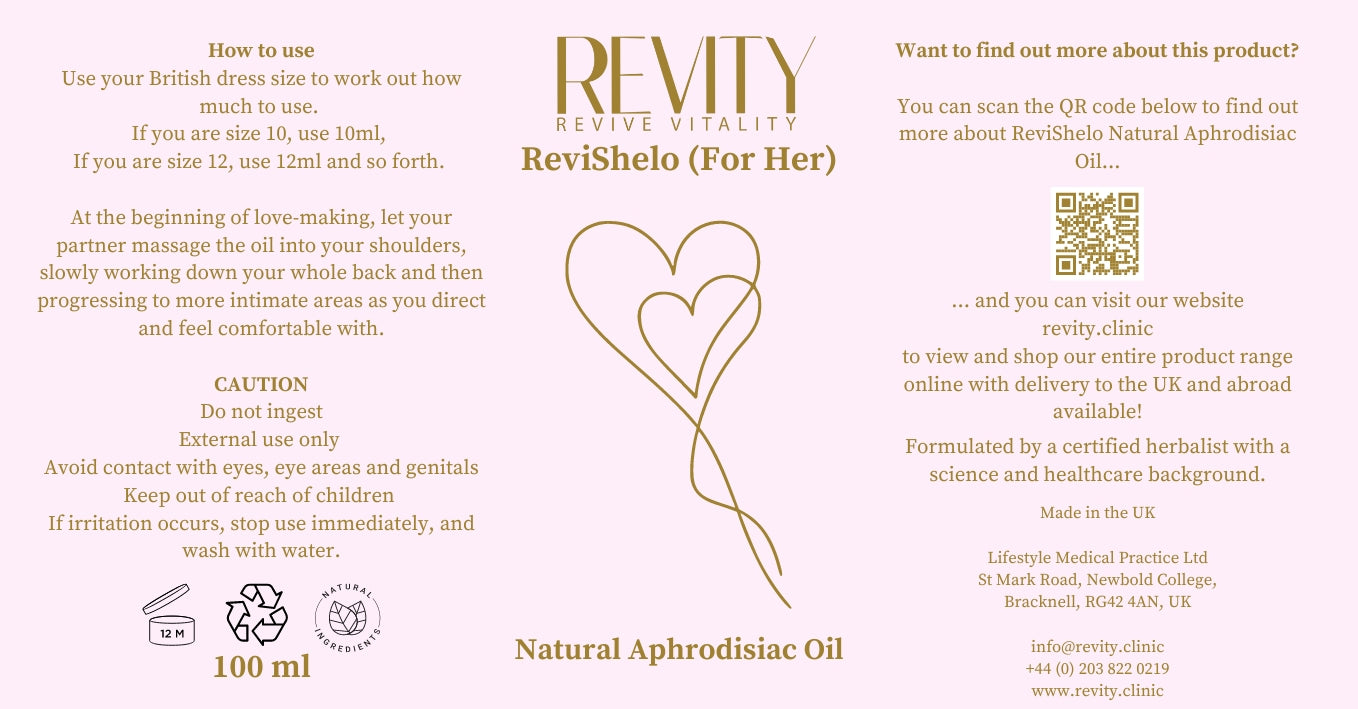 Are you experiencing a few problems in the bedroom and have lost your desire; our massage oils might be just what you need? Specially formulated for women, ReviShelo is designed to create a sensual massage experience for romantic nights of passion. This oil will help you to relax while stimulating desire.